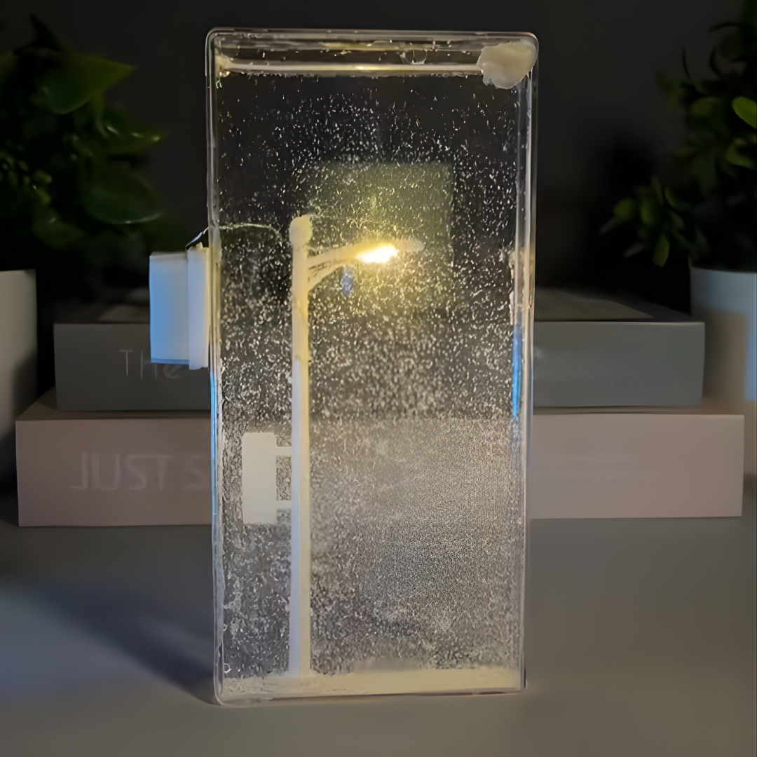 La tengo hace casi 6 meses y estoy encantada. Al principio dudaba si el efecto se iría perdiendo, pero el agua sigue igual de cristalina y la "nieve" se mueve con la misma fluidez. Es muy duradera y el mecanismo es silencioso. La uso casi todas las noches como decoración y luz auxiliar.